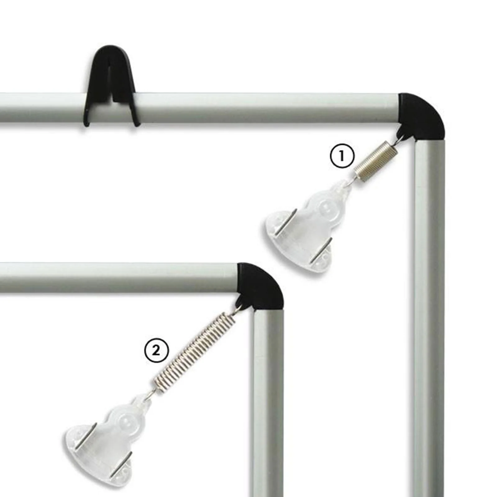 - 4 Federspanner halten das Poster straff und zentriert